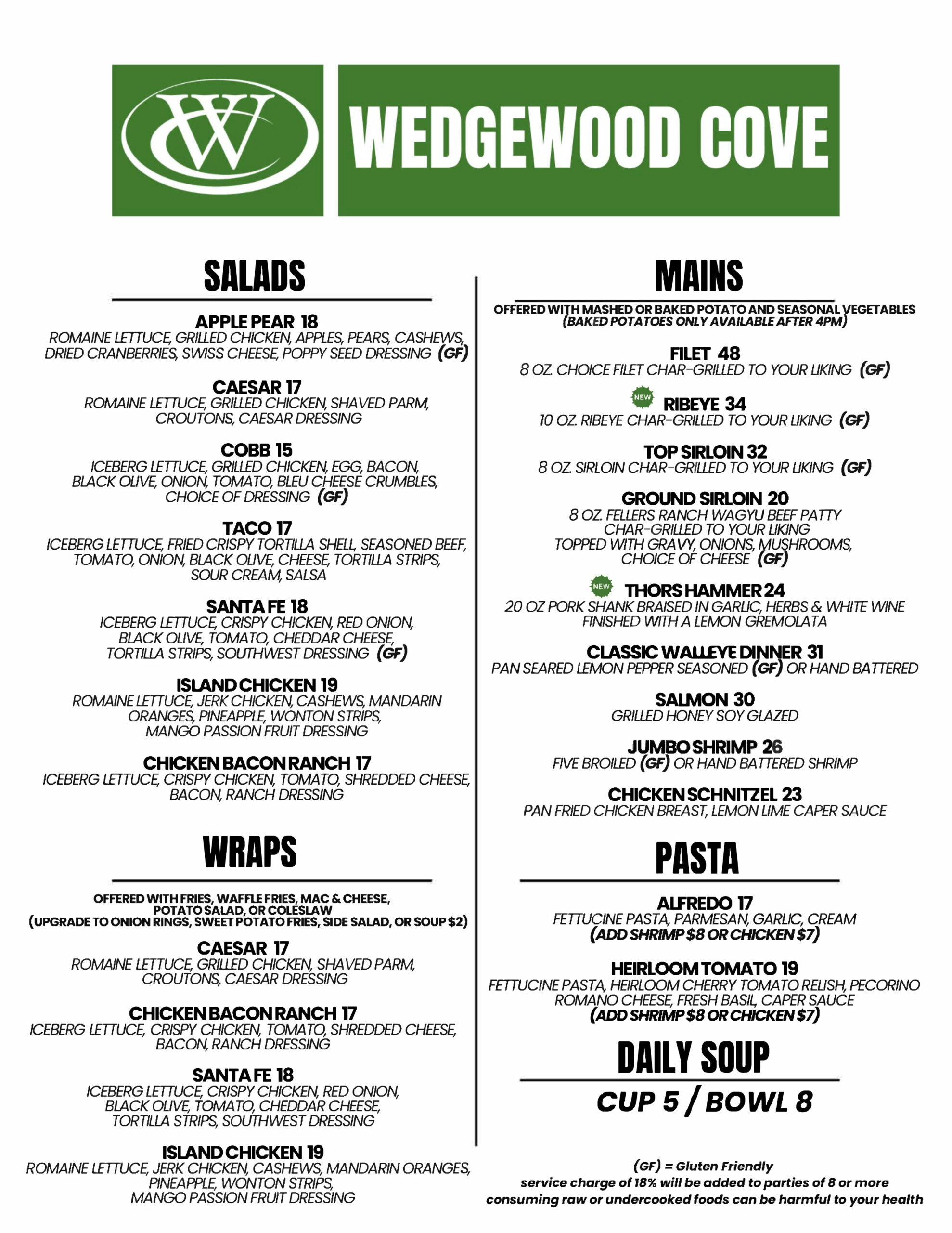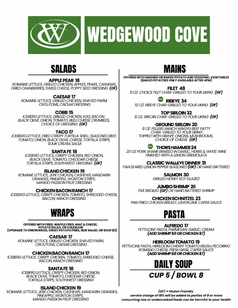 Wedgewood Cove offers two private dining rooms that can accommodate meetings and groups of up to 14-20 people.